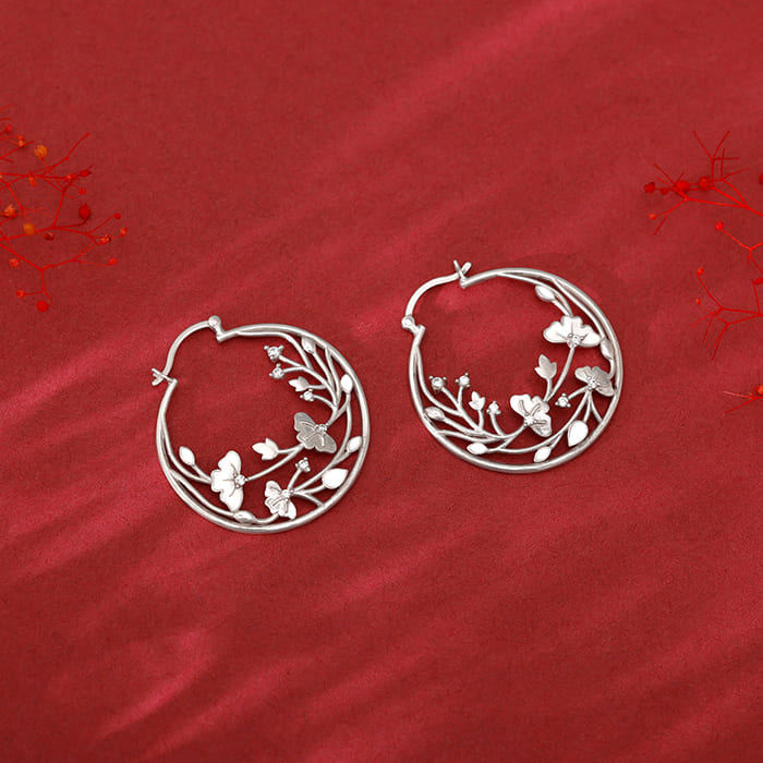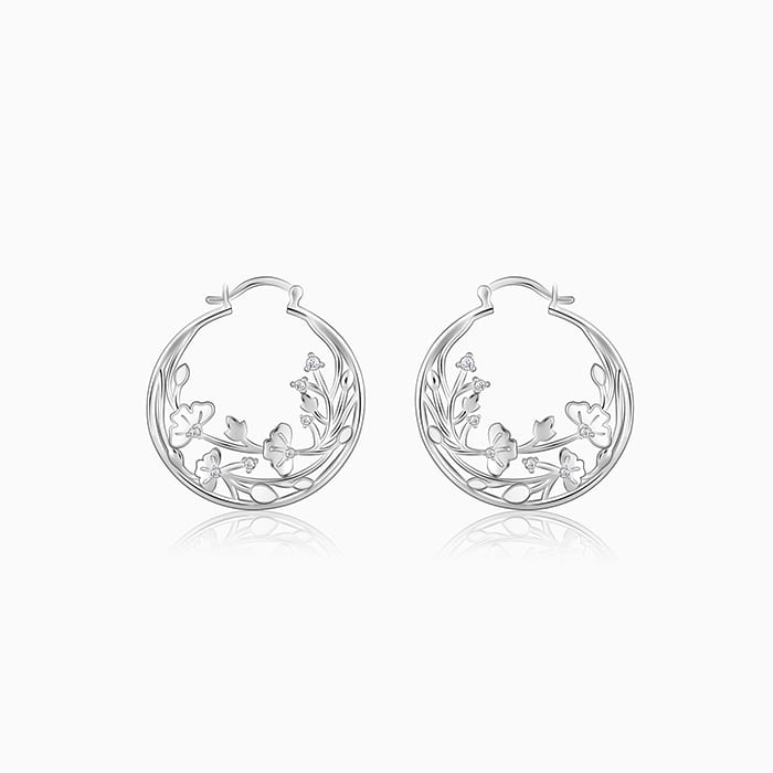 Silver Eyebright Hoop Earrings